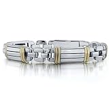 Strong architectural lines define the theme of this powerful looking link bracelet. Handcrafted of sterling silver and accented with 18K gold. Security will never be an issue with the patent pending magnetic clasp. Easy to put on and remove....although once you have it on you will not want to take it off.
